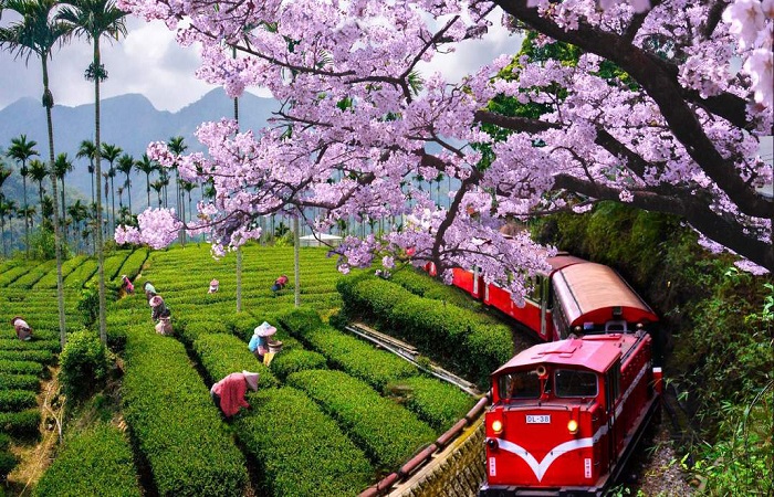 Thị trấn A Lý Sơn vào mùa xuân khi anh đào nở rộ. Ảnh: KlookAlishan (A Lý Sơn) được coi là một trong những thị trấn đẹp nhất ở Đài Loan. Tọa lạc ở huyện Chiayi, thị trấn miền núi này là nơi có dãy núi A Lý Sơn ngoạn mục, là điểm đến tham quan tuyệt vời cho những du khách yêu thích thiên nhiên cùng các trải nghiệm và hoạt động ngoài trời ly kỳ.