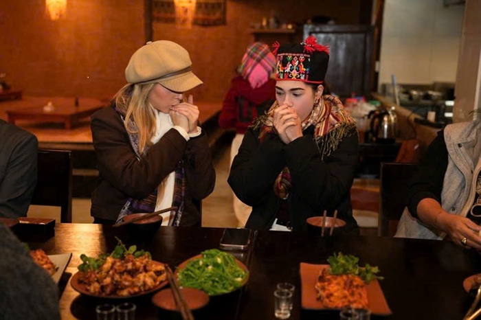 Top 2 Miss Cosmo 2025 trải nghiệm ẩm thực địa phương trong tiết trời se lạnh đặc trưng của Sa Pa. Ảnh: Instagram nhân vật