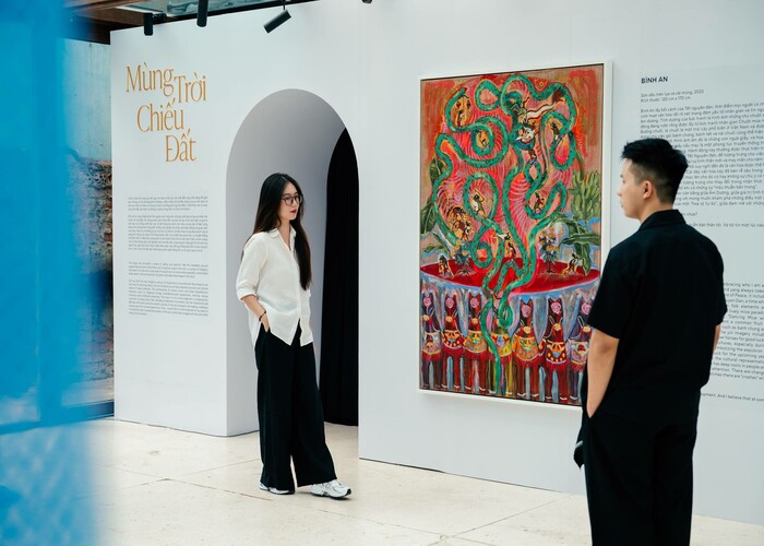 Mùng Trời Chiếu Đất là triển lãm tiếp nối thành công của “Dưới Ánh Mặt Trời - Under The Sun”. Ảnh: Flava Live“Dưới Ánh Mặt Trời 2: Mùng Trời Chiếu Đất” là hành trình tìm kiếm bản thân mình, hiểu được mình là ai thông qua những tác phẩm nghệ thuật độc đáo, tái hiện những ký ức tuổi thơ, những chất liệu văn hoá Việt Nam đầy hoài niệm. “Mùng trời” là nơi ta đã phóng tầm mắt, nhìn ngắm thế giới với bao giấc mơ, hoài bão khi còn thơ bé; còn “chiếu đất” là nơi để dừng chân, để nghỉ ngơi và tự mình nhìn lại những gì trải qua, phản tư lại chính mình.