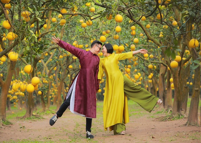 Chắc chắn bạn sẽ có hàng trăm tấm hình đậm chất Tết ở vườn bưởi Diễn Hà Nội. Ảnh: Báo Sài Gòn giải phóngChỉ cần đi dọc đường Văn Tiến Dũng, bạn sẽ thấy hai bên là những vườn bưởi Diễn đang vườn rực, thơm lừng. Bạn có thể tìm tới vườn bưởi Diễn Thanh Thúy, Hà Rím... Tuy nhiên, không phải vườn bưởi nào cũng mở cửa đón khách chụp ảnh nên bạn có thể liên hệ trước để tìm hiểu quy định tại các vườn bưởi Diễn khác.
