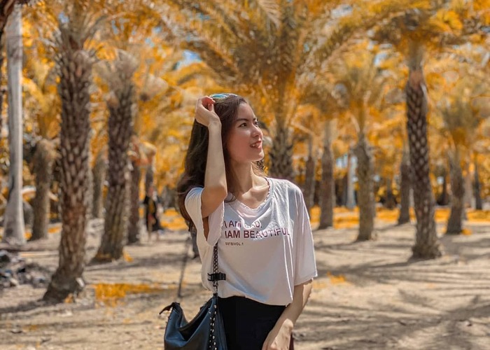 Nếu không thể đến vào mùa thu hoạch, bạn vẫn có thể check-in với background xanh mướt thơ mộng tại vườn chà là. Ảnh: autotelic_8