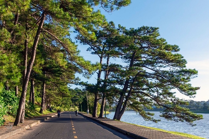Con đường rợp bóng cây xanh thơ mộng bao quanh hồ Xuân Hương. Ảnh: amazingdalatNếu bạn muốn chiêm ngưỡng phong cảnh tuyệt thế của hồ thì hãy du lịch Đà Lạt vào những ngày cuối năm, khi những cơn mưa đã thưa dần không bất chợt đến, trả lại cho hồ vẻ êm đềm thường có.