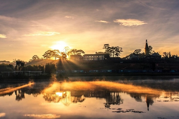 Bình minh và hoàng hôn là hai khoảnh khắc đẹp nhất ở hồ Xuân Hương. Ảnh: My Tom Hai TrungNgoài ra, ẩm thực quanh hồ Xuân Hương cũng là một trong những điều thu hút lữ khách bởi sự phong phú và hương vị độc đáo mà giá cả cũng phải chăng. Các món bạn có thể thử đó là: bánh tráng nướng, sữa nóng, ngô nướng, nhâm nhi ly cafe...