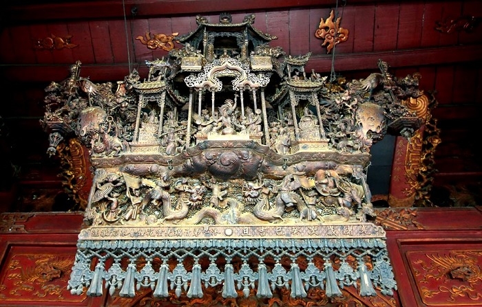 Kiến trúc chùa được làm bằng gỗ, với hoa văn trạm khắc tinh xảo. Ảnh: hanoitv
