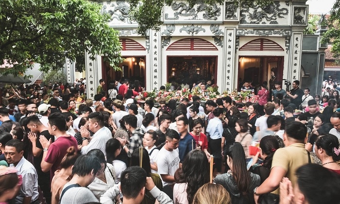 Chùa Hà tấp nập các du khách, đặc biệt là các bạn trẻ tới thắp hương lễ Phật cầu Thánh dịp năm mới. Ảnh: tinmoi