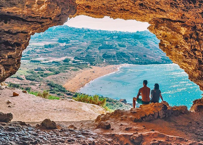 Du khách check in hang động Calypso với view nhìn ra bãi biển cát đỏ. Ảnh: PinterestMặc dù đây là bãi biển lớn nhất và nổi tiếng nhất ở Gozo và được người dân địa phương cũng như khách du lịch thường xuyên lui tới, nhưng nó không bao giờ quá đông đúc, kể cả vào mùa cao điểm. Nếu bãi cát đỏ chưa đủ thỏa mãn thị giác của bạn, bãi biển cũng có tượng Đức Mẹ bồng con chúa Jesus, thể hiện niềm tin tôn giáo mạnh mẽ của người dân Gozo hay hang động Calypso gần đó để bạn tham quan.