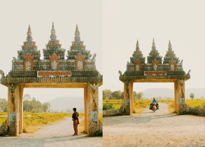 Không giống các ngôi chùa khác ở An Giang, cánh cổng nằm cách xa khu chánh điện và bạn cần di chuyển qua một con đường nhỏ uốn lượn mới đến được. Cung đường này là một hành trình ngắn giúp bạn chìm đắm trong khung cảnh làng quê thanh bình, tĩnh lặng và tận hưởng những khoảnh khắc thư giãn tuyệt vời sau những ngày dài làm việc, học tập căng thẳng.