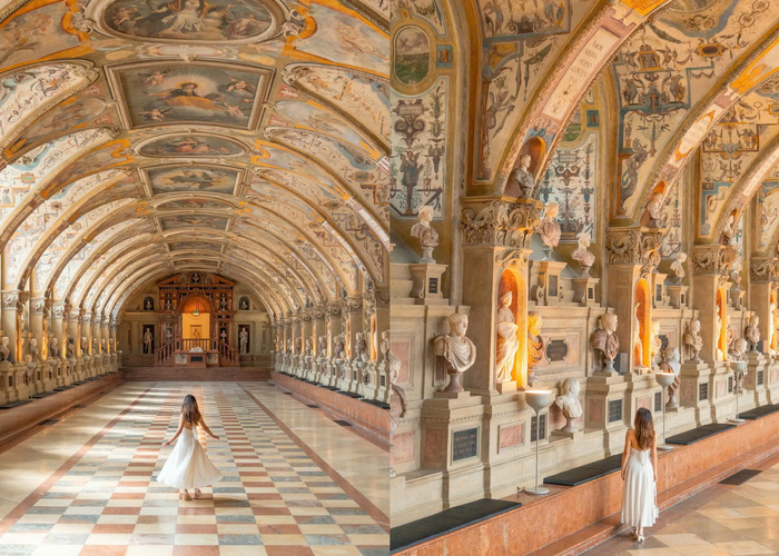 - Antiquarium: Antiquarium là khu vực Đại sảnh nổi tiếng nhất tại cung điện Residenz. Đây là từng là căn phòng dài nhất thời Phục Hưng, được sử dụng làm nơi trưng bày các tượng cổ quý giá. Vẻ đẹp của Đại sảnh thu hút rất đông du khách đến chụp ảnh.