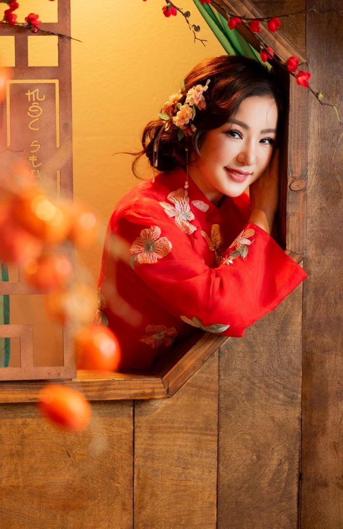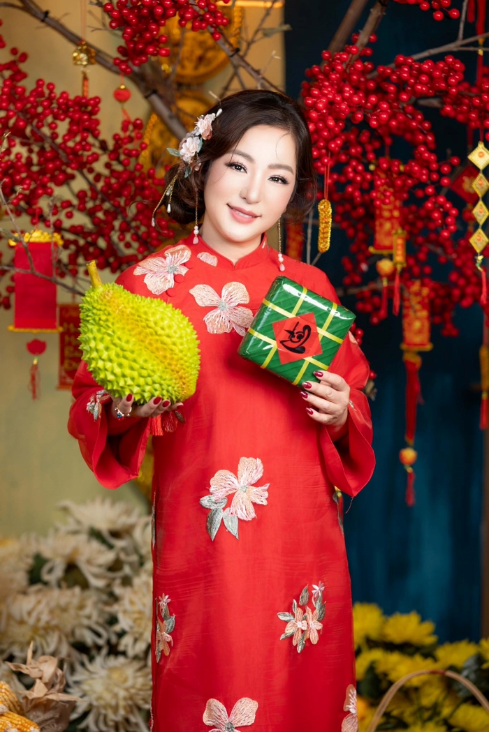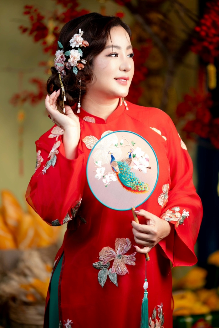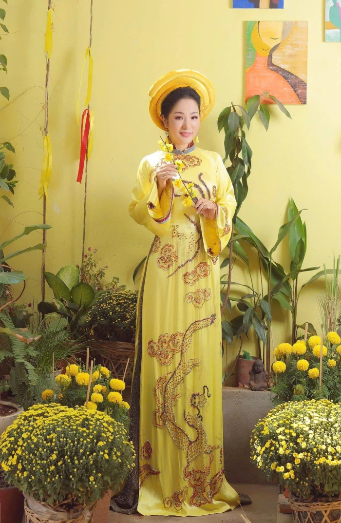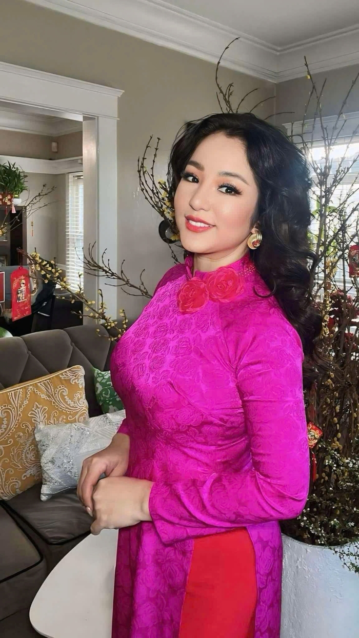 Nếu bạn nghĩ rằng người nhỏ con thì không nên mặc áo dài cầu kỳ, hãy nhìn Thúy Nga và... suy nghĩ lại! Cô chính là minh chứng sống cho việc: Chiều cao không quan trọng, quan trọng là thần thái và một chiếc mấn đủ cao! Thúy Nga có một bộ sưu tập áo dài đồ sộ đến mức có lẽ phải xây thêm kho mới chứa hết. Từ những mẫu áo dài trơn tối giản, thanh lịch đến những bộ cánh thêu rồng múa phượng, đính kết đá quý cầu kỳ như sắp đi "trẩy hội" phương xa, bộ nào cũng được cô diện một cách "chặt chém" không thương tiếc.