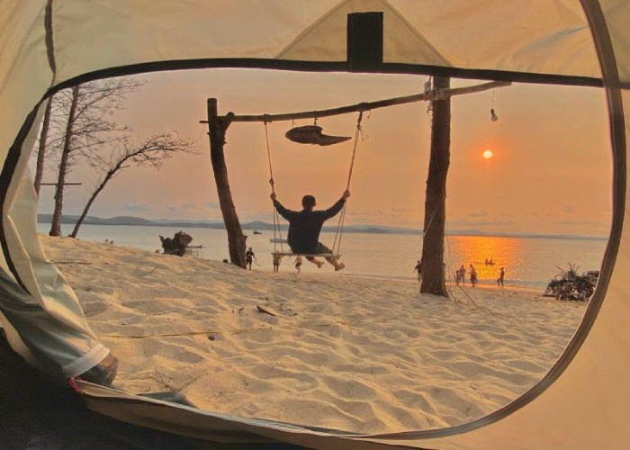 Hãy tưởng tượng bạn dựng lều trên bãi cát trắng, lắng nghe tiếng sóng vỗ và ngắm hoàng hôn buông xuống. Buổi tối, đốt lửa trại, nướng hải sản tươi và chia sẻ câu chuyện dưới bầu trời đầy sao – một trải nghiệm chữa lành tâm hồn mà ít nơi nào có được. Nhiều du khách chia sẻ rằng, cảm giác "không muốn quay về" sau khi cắm trại tại đây là điều khó quên.