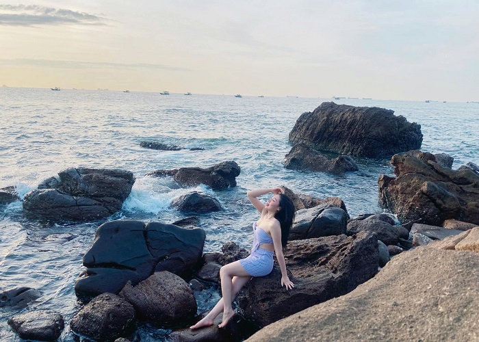 Nhiều góc lên ảnh cực xinh tại đảo Cái Chiên. Ảnh: An HoàĐầu Rồng là bãi tắm đẹp nhất trên đảo Cái Chiên Quảng Ninh. Biển trong và sâu hơn so với các bãi khác, bãi cát cũng chạy dài, trắng mịn. Xung quanh Đầu Rồng còn có hàng phi lao cao vút đung đưa trong gió, tạo nên tiếng nhạc đầy thú vị. Ở bãi tắm này cũng có khu thay đồ, tắm tráng cùng dịch vụ ăn uống.