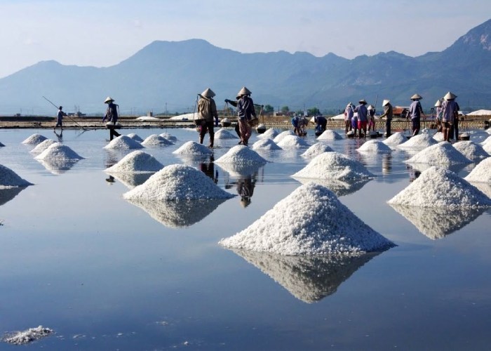 Trải nghiệm làm muối tại cánh đồng muối Sa Huỳnh. Ảnh: france.hellovietnam