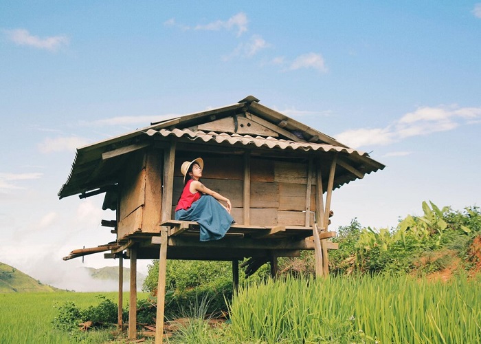 Du lịch Xím Vàng Sơn La chớ quên check in trên ruộng bậc thang. Ảnh: Minh PhươngRuộng bậc thang Xím Vàng Sơn La đẹp nhất là vào mùa thu, tầm tháng 9 – tháng 10. Lúc này, chỉ cần đặt chân tới xã, bạn đã thấy hương lúa chín phảng phất khắp nơi. Đi dạo ruộng bậc thang, một sắc vàng óng ả phủ kín xung quanh, tạo nên bức tranh thiên nhiên tươi đẹp mà thân thương.