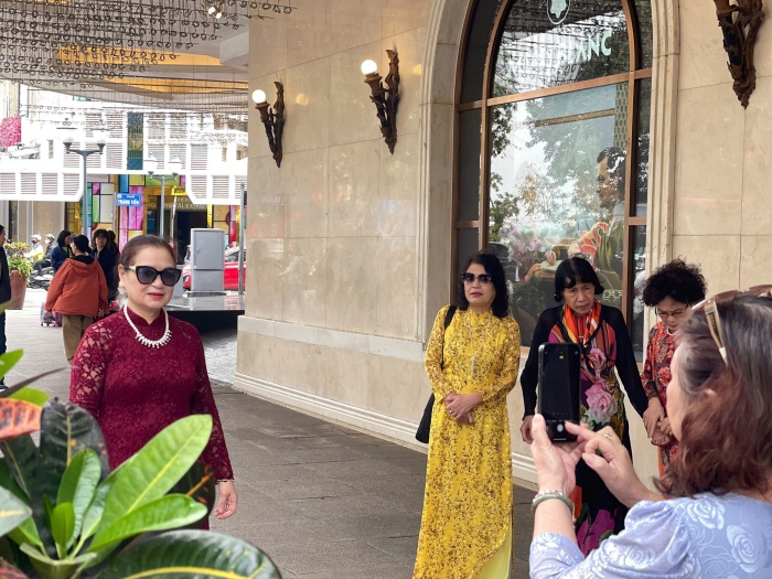 Giữa không gian Thủ đô được trang hoàng lộng lẫy, những tà áo dài thướt tha rực rỡ xuống phố, góp phần làm cho không khí đầu xuân thêm tươi vui, rộn ràng và đầy sức sống.Giữa không gian Thủ đô được trang hoàng lộng lẫy, những tà áo dài thướt tha rực rỡ xuống phố, góp phần làm cho không khí đầu xuân thêm tươi vui, rộn ràng và đầy sức sống.