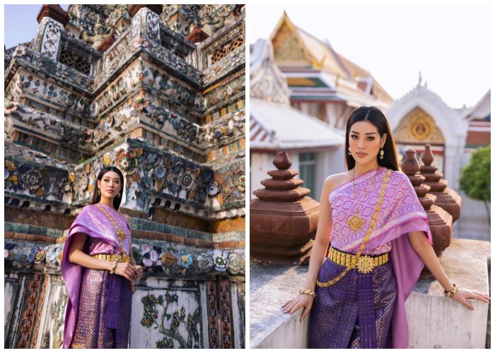 Du lịch Thái Lan và ghé thăm ngôi chùa Wat Pho nổi tiếng ở Bangkok, Hoa hậu Khánh Vân đã có màn hoá gái Thái xinh ngất, cô được khen là trông xinh đẹp và cuốn hút khi diện trang phục truyền thống của Thái Lan.