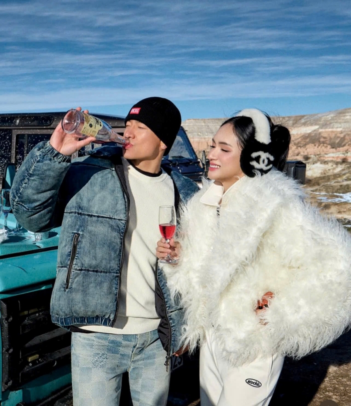 Hành trình lần này thêm phần trọn vẹn nhờ sự đồng hành của bạn trai Phú Cường. Cặp đôi đã cùng nhau tận hưởng những trải nghiệm mang đậm chất thượng lưu: