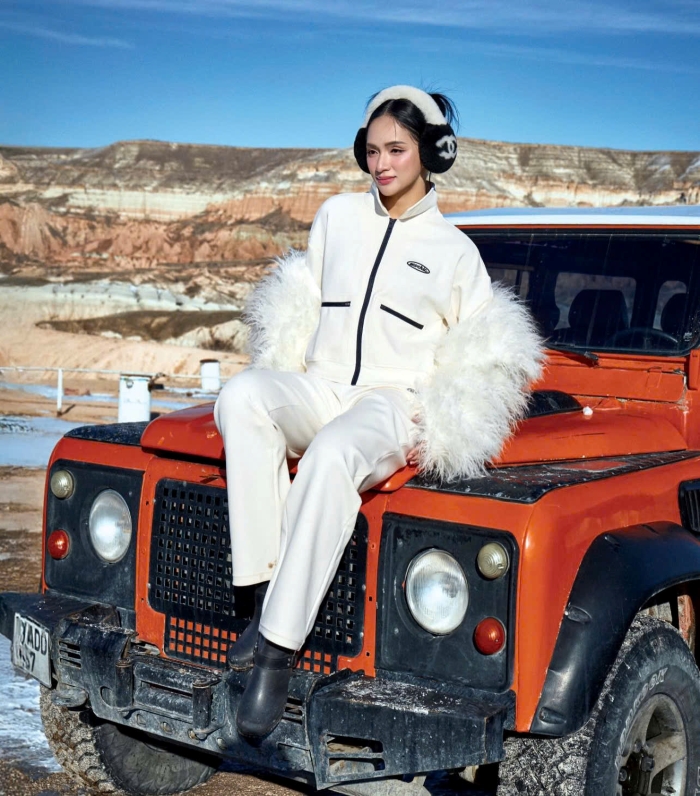 - Phong thái rạng rỡ: Giữa nền tuyết trắng tinh khôi, làn da trắng sứ và thần thái rạng rỡ của Hương Giang chính là "trang sức" quý giá nhất, khiến mọi khung hình đều đẹp như bìa tạp chí.