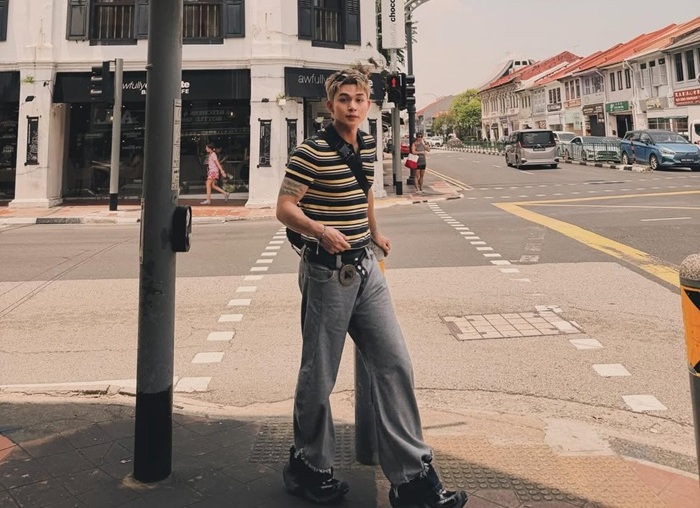 Bài đăng đầu tiên ghi lại hành trình khám phá khu Joo Chiat Road, địa điểm nổi tiếng với dãy nhà shophouse nhiều màu sắc. Trong ảnh, nam ca sĩ diện áo polo kẻ sọc, quần jeans ống rộng, tạo dáng giữa ngã tư đường. Phong cách trẻ trung, pha chút bụi bặm giúp anh nhận nhiều lời khen từ người hâm mộ.