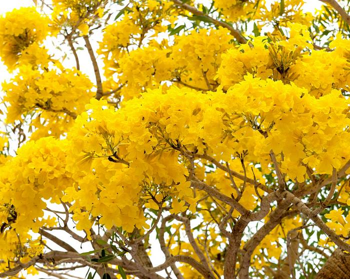 Những chùm hoa to, vàng óng, khiến cảnh sắc xung quanh bừng sáng.