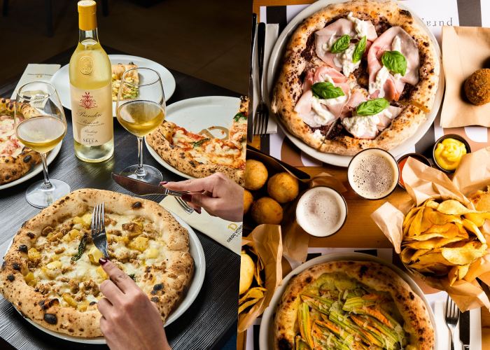 Menu ở đây có rất nhiều lựa chọn từ các loại pizza truyền thống tạo nên từ cà chua San Marzano, phô mai Mozzarella di Bufala và dầu ô liu với hương vị béo ngậy, chua nhẹ đầy cân bằng cho đến những chiếc pizza Signature kết hợp nấm truffle, thịt nguội thượng hạng và sốt kem đặc chế tạo nên những tầng hương vị quyến rũ.