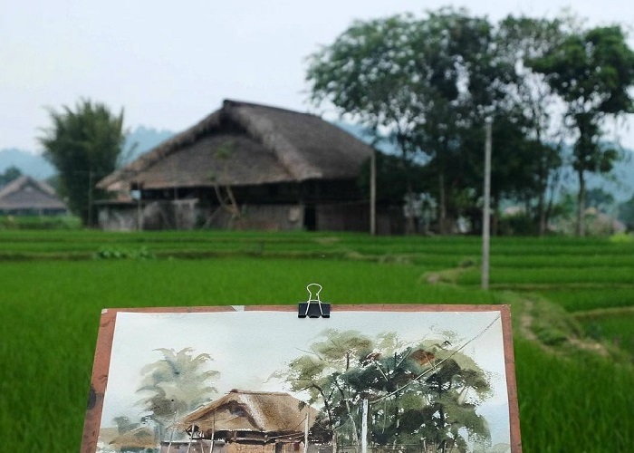 Bức tranh thiên nhiên xanh mát, trong lành của thôn Tha. Ảnh: @baohuynhwatercolor
