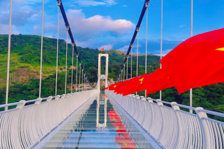 Cầu kính Bạch Long, được biết đến là cầu kính đi bộ dài nhất thế giới, là một điểm đến không thể bỏ qua trong hành trình khám phá miền Bắc. Với chiều dài lên tới 632 mét, cầu không chỉ mang lại trải nghiệm đi bộ độc đáo mà còn cho phép du khách chiêm ngưỡng vẻ đẹp ngoạn mục của núi rừng Tây Bắc từ trên cao. Bước đi trên cầu kính trong suốt, bạn sẽ có cảm giác như đang lướt trên không trung giữa khung cảnh thiên nhiên hùng vĩ, với những thung lũng xanh tươi và những dãy núi trùng điệp. Ngoài ra, cầu kính Bạch Long còn được trang trí với các tác phẩm nghệ thuật độc đáo, tạo cơ hội cho du khách thoải mái chụp ảnh và lưu giữ những khoảnh khắc đáng nhớ. Trong tour du lịch miền Bắc, cầu kính Bạch Long sẽ là một trong những điểm dừng chân hấp dẫn, mang đến cho bạn những trải nghiệm thú vị và đầy cảm xúc.