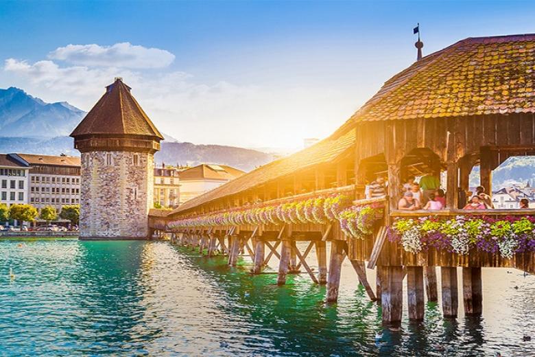 Cầu gỗ Chapel: Cầu dài 240m bắc qua sông Reuss, cổ nhất Châu Âu, biểu tượng du lịch của Lucerne.