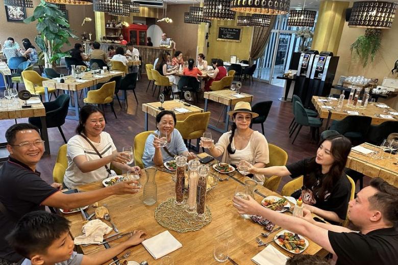 12:30: Đoàn dùng bữa trưa tại nhà hàng ở Andorra.