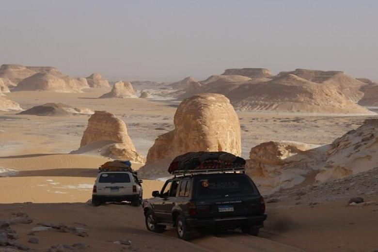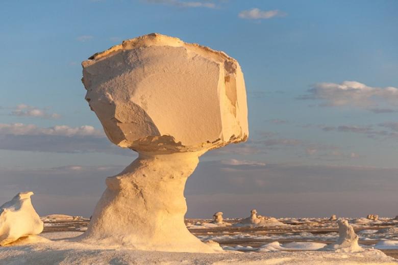 Sa mạc Trắng: Một vùng đất trắng đơn sắc với măng đá lấp lánh như pha lê và các cột đá hình nấm, gợi nhớ đến Cappadocia, Thổ Nhĩ Kỳ, được xem là bảo tàng nghệ thuật ngoài trời.