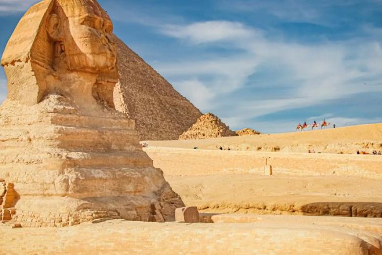 Đại tượng Nhân sư: Tượng đầu người mình sư tử dài 45m, chạm khắc từ đá, nổi tiếng với câu đố: “Con gì sáng đi bốn chân, trưa đi hai chân, tối đi ba chân?”.