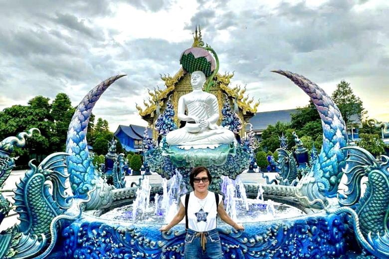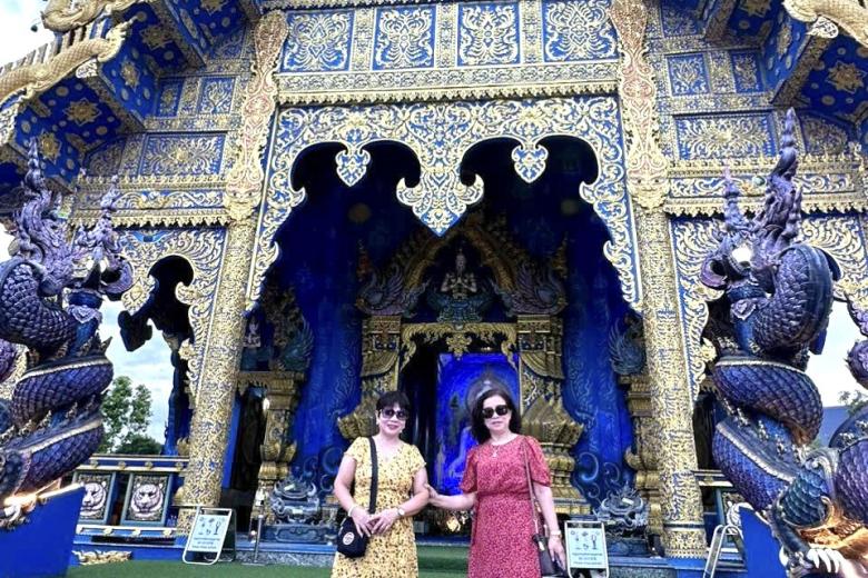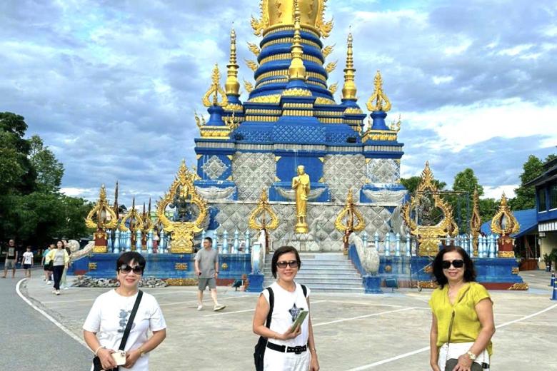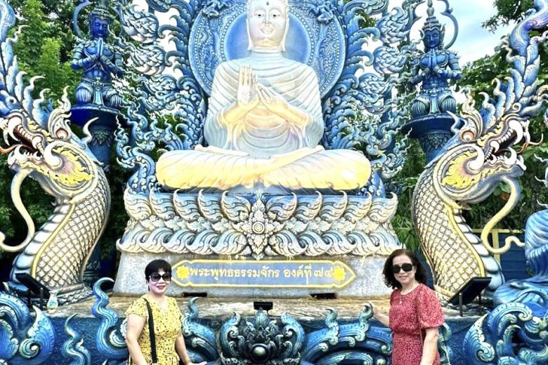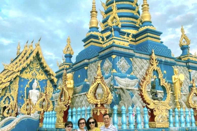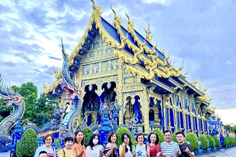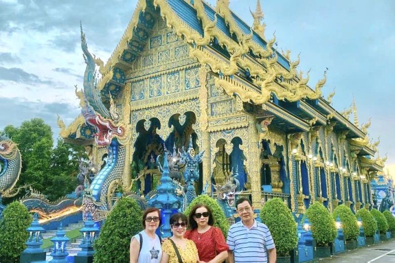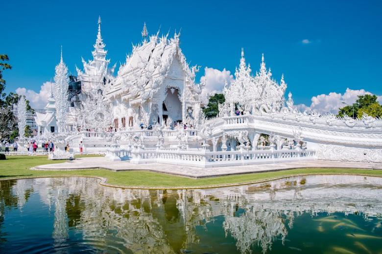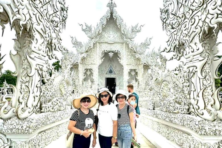 Đoàn tham quan Chùa Trắng - Wat Rong Khun, chùa được ông Chalermchai Kositpipat - họa sĩ và là một trong những kiến trúc sư nổi tiếng ở Thái Lan thiết kế và xây dựng. Ngôi chùa được kết hợp một cách hoàn hảo giữa lối kiến trúc Thái cổ điển với phong cách siêu thực cùng tông màu chủ đạo toàn trắng biểu trưng cho sự tinh khiết của Đức Phật. Bước vào ngôi chùa, bạn sẽ choáng ngợp với vẻ đẹp của màu trắng tinh khiết như có tuyết rơi hiện hữu ở khắp mọi nơi. Bất kể thời điểm nào trong năm, cổng vào của ngôi chùa cũng luôn tấp nập du khách từ khắp nơi trên thế giới.