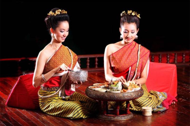12h00: Xe và Hướng dẫn viên của công ty đón đoàn tại điểm hẹn, đưa lên sân bay Nội Bài, đáp chuyến bay FD871 (15h20 - 16h55). Hướng dẫn viên Thái Lan đón Quý khách đến với VƯƠNG QUỐC CỦA NỤ CƯỜI, đưa đoàn đi ăn tối “KhanToke” là bữa tối truyền thống của vương quốc Lanna cổ xưa.