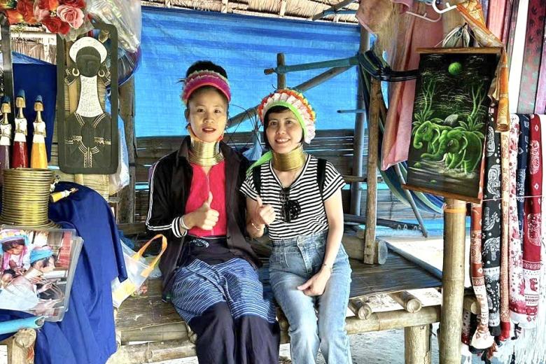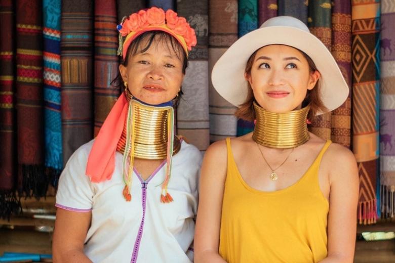 Tham gia hành trình tour du lịch Thái Lan, đoàn di chuyển đến Làng Cổ dài (Long Neck Village) tham quan và tìm hiểu những tập tục truyền thống của người dân tộc thiểu số Karen. Người Karen vốn có nguồn gốc từ Myanmar, nhưng do những yếu tố về kinh tế và chính trị nên họ dần di chuyển sang Thái Lan sinh sống và định cư. Họ có tập tục độc đáo là đeo vòng trên cổ, vì theo quan niệm truyền thống người Karen là con cháu của Phượng hoàng nên cổ càng dài sẽ càng đẹp và thanh cao, ngoài ra số lượng vòng trên cổ càng nhiều càng chứng minh cho sự giàu có và sung túc của gia đình