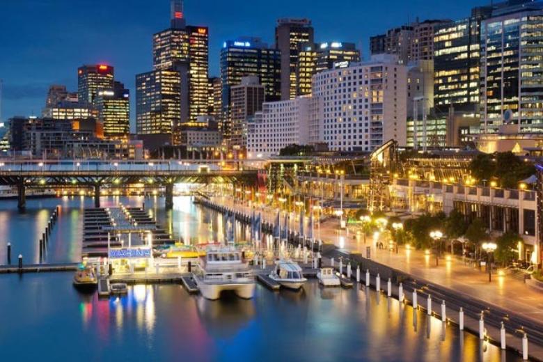 Vịnh Darling Harbour: Bến cảng sôi động, cách trung tâm Sydney 10 phút đi bộ, với quán cà phê, sân chơi trẻ em và các hoạt động giải trí miễn phí hàng tuần.