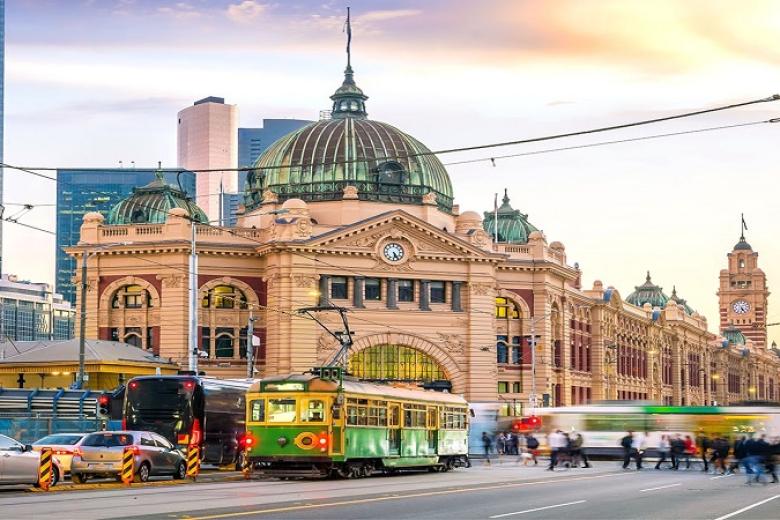 Trạm xe lửa Finders Station: Hoàn thành năm 1909, biểu tượng văn hóa Melbourne với mái vòm, tháp đồng hồ và cửa cong, là ga đường sắt đô thị đầu tiên của Úc.