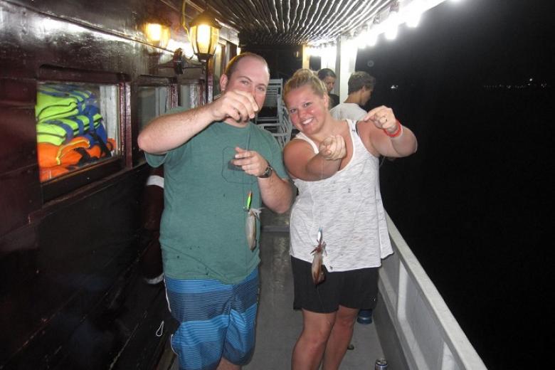 Xe đưa Qúy khách đến cảng biển, lên tàu và bắt đầu cuộc trải nghiệm hành trình Câu cá lặn ngắm san hô trên tàu. Qúy khách được cung cấp thiết bị câu cá (dây câu, mồi) và được trang bị áo phao, kính lặn, ống thở khi tham gia lặn biển ngắm san hô.