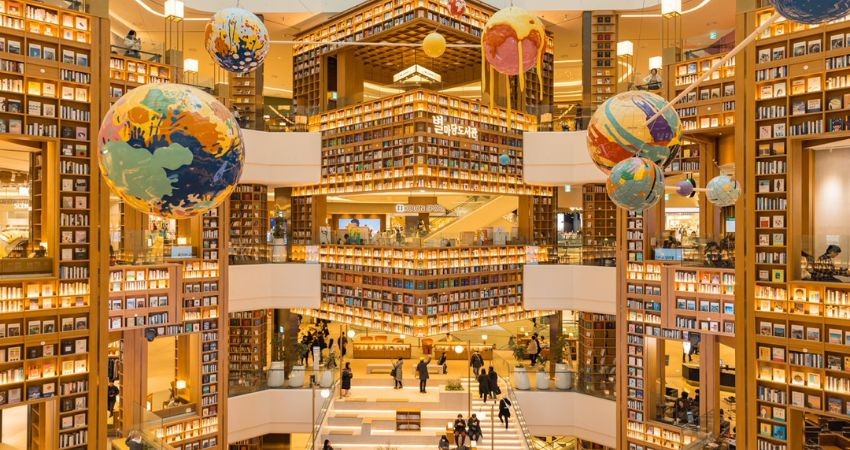 Trải nghiệm mặc trang phục Hanbok là hoạt động được nhiều du khách yêu thích khi đến Hàn QuốcThư viện Starfield nằm trong trung tâm thương mại COEX Mall và nổi tiếng với không gian hiện đại cùng những kệ sách cao nhiều tầng. Nơi đây có hàng chục nghìn đầu sách thuộc nhiều lĩnh vực khác nhau và mở cửa miễn phí cho du khách tham quan. Nhiều người ghé thư viện để đọc sách, nghỉ ngơi hoặc chụp ảnh với những kệ sách ấn tượng. Thiết kế mở và ánh sáng tự nhiên khiến nơi này trở thành một điểm check-in được yêu thích tại Seoul.