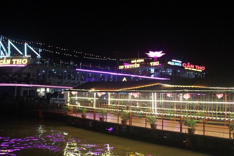 Đoàn tiếp tục di chuyển ra bến thuyền Tp Mỹ Tho, thuyền chạy dọc theo bè cá nổi để du khách tìm hiểu cách nuôi cá trên sông của người dân địa phương và ngắm nhìn cầu Rạch Miễu.