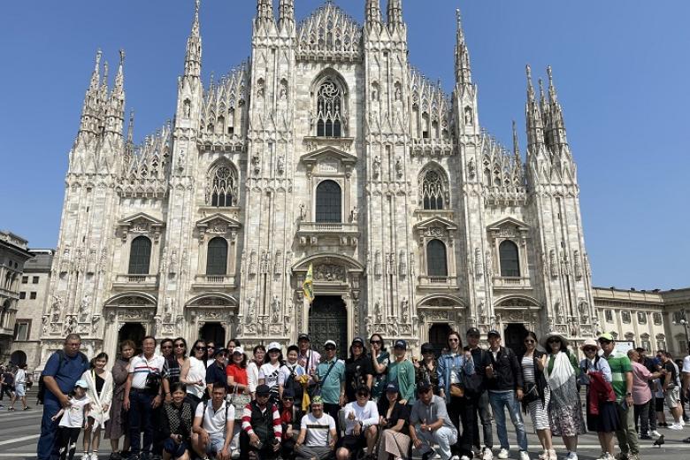 08:00: Xe đưa đoàn đến Milan (280km), kinh đô thời trang với các tác phẩm nghệ thuật như “Bữa ăn tối cuối cùng” của Leonardo da Vinci và nhà thờ Duomo Gothic tráng lệ.