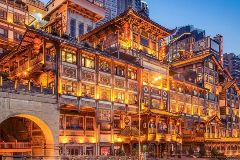 Phố Cổ Hồng Nhai Động tại Trùng Khánh là một kiệt tác kiến trúc độc đáo, nơi mà lịch sử và hiện đại giao thoa, tạo nên một không gian sống động đầy mê hoặc. Nằm ngay bên bờ sông Dương Tử, khu phố cổ này được xây dựng dựa trên vách núi, với những tòa nhà gỗ nhiều tầng chồng lên nhau, khiến nơi đây trở thành một biểu tượng kiến trúc nổi bật của Trùng Khánh. Bước chân vào Hồng Nhai Động, du khách như lạc vào một thế giới cổ xưa, với những con đường lát đá, hàng quán truyền thống và các cửa hàng thủ công mỹ nghệ đặc sắc.