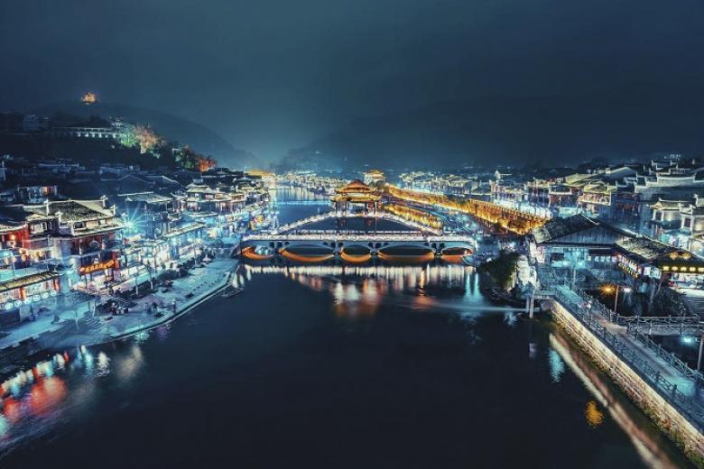 Phượng Hoàng Cổ Trấn – thị trấn cổ kính bên dòng Đà Giang, được mệnh danh là một trong những cổ trấn đẹp nhất Trung Quốc. Nơi đây gây ấn tượng với những ngôi nhà gỗ sàn cổ hàng trăm năm tuổi, các cây cầu đá bắc ngang sông và con phố nhỏ rực rỡ ánh đèn lồng mỗi khi đêm xuống. Du khách có thể dạo bước ven sông, ngắm cảnh nhà cổ soi bóng xuống mặt nước, thưởng thức ẩm thực địa phương hay ngồi thuyền xuôi dòng Đà Giang ngắm toàn cảnh trấn. Với vẻ đẹp vừa nên thơ, vừa cổ kính, Phượng Hoàng Cổ Trấn là điểm dừng chân lý tưởng cho những ai yêu thích sự bình yên và nét đẹp hoài cổ.