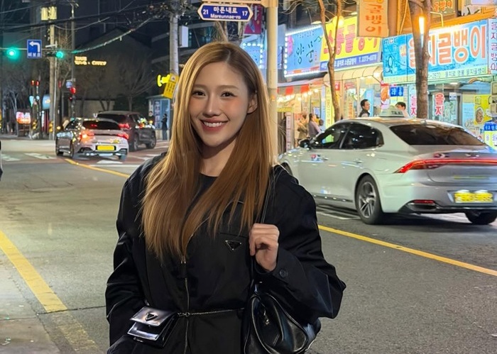 Uyển Ân diện trang phục tông tối, tạo dáng trên đường phố Seoul về đêm. Ảnh: Instagram nhân vậtPhong cách thời trang của Uyển Ân xuyên suốt chuyến đi theo hướng tối giản. Cô lựa chọn áo khoác dáng rộng tông đen, phối cùng túi xách nhỏ và trang phục gọn gàng. Lối trang điểm nhẹ giúp tổng thể giữ được vẻ tự nhiên, phù hợp không gian đường phố.