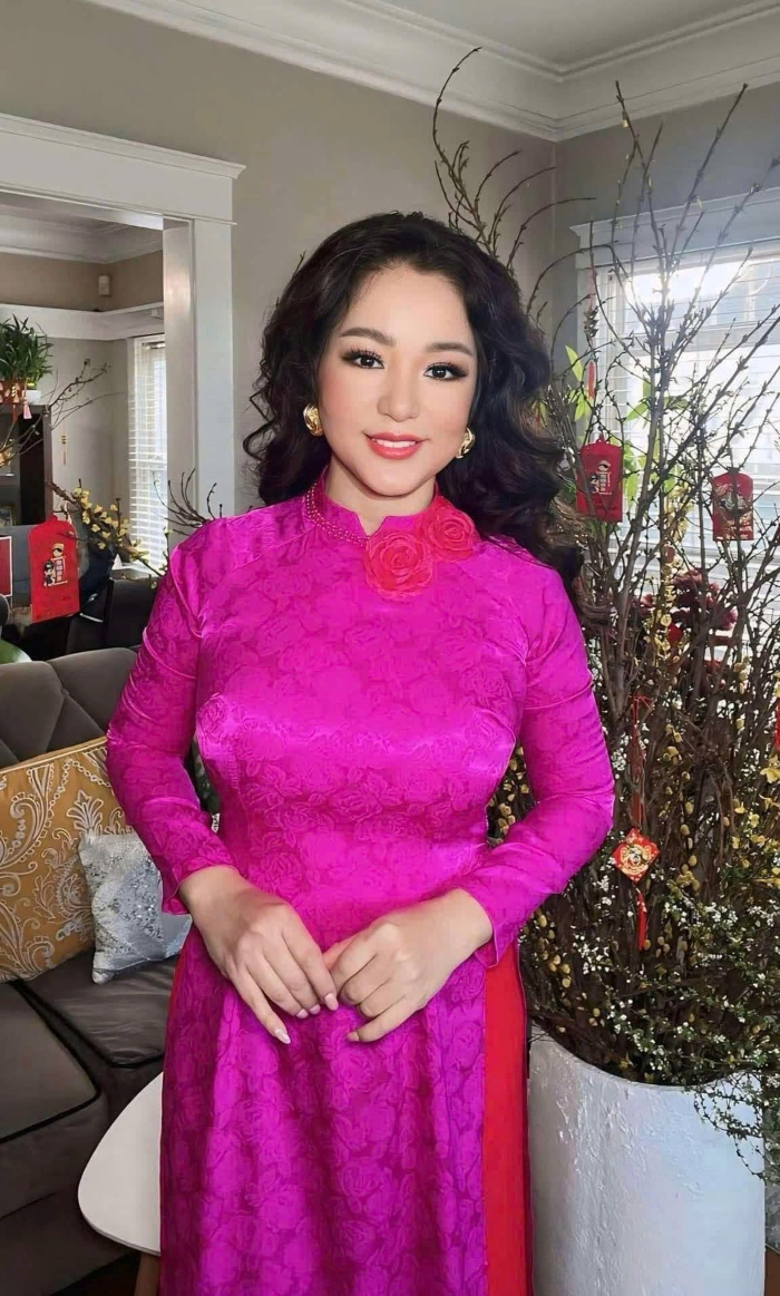 Nếu bạn nghĩ rằng người nhỏ con thì không nên mặc áo dài cầu kỳ, hãy nhìn Thúy Nga và... suy nghĩ lại! Cô chính là minh chứng sống cho việc: Chiều cao không quan trọng, quan trọng là thần thái và một chiếc mấn đủ cao! Thúy Nga có một bộ sưu tập áo dài đồ sộ đến mức có lẽ phải xây thêm kho mới chứa hết. Từ những mẫu áo dài trơn tối giản, thanh lịch đến những bộ cánh thêu rồng múa phượng, đính kết đá quý cầu kỳ như sắp đi "trẩy hội" phương xa, bộ nào cũng được cô diện một cách "chặt chém" không thương tiếc.