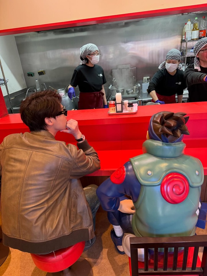 Nam diễn viên ngồi cùng người thầy đặc biệt của Naruto - Umino Iruka. Ảnh: Instagram nhân vậtBên cạnh đó, Dew còn check-in tại DiverCity Tokyo Plaza với tượng Gundam khổng lồ phát sáng vào ban đêm. Trong không gian hiện đại, rực rỡ ánh đèn, nam diễn viên tạo dáng đơn giản nhưng vẫn toát lên thần thái cuốn hút. Những bức ảnh nhanh chóng thu về hàng trăm nghìn lượt tương tác.