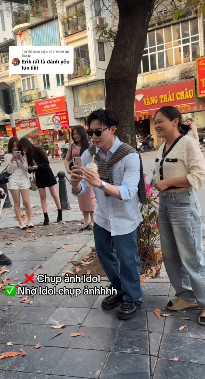 Anh chàng lựa chọn ghé qua bốt hàng ĐậuTrong một số bức hình, Erik còn tạo dáng bên những chiếc lá vàng trên vỉa hè, hoặc đứng giữa góc phố đông người qua lại. Bối cảnh quen thuộc của bốt hàng Đậu Hà Nội cùng con đường lát đá, hàng cây cổ thụ hay nhịp sống phố phường tấp nập càng làm nổi bật phong cách thời trang thoải mái, cá tính của nam ca sĩ. Nhiều người hâm mộ cho rằng phong cách lần này của Erik mang hơi hướng “chàng trai Hà Nội trong chiều xuân”, vừa giản dị nhưng vẫn rất thời trang. Sự kết hợp giữa gam màu trung tính như xanh, nâu và đen cũng giúp tổng thể trang phục trở nên hài hòa với khung cảnh mùa thu đặc trưng của thủ đô.