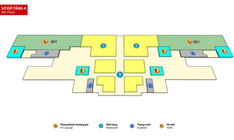 Tầng 4 là phòng chờ hạng thương gia và khu dịch vụ thương mại.