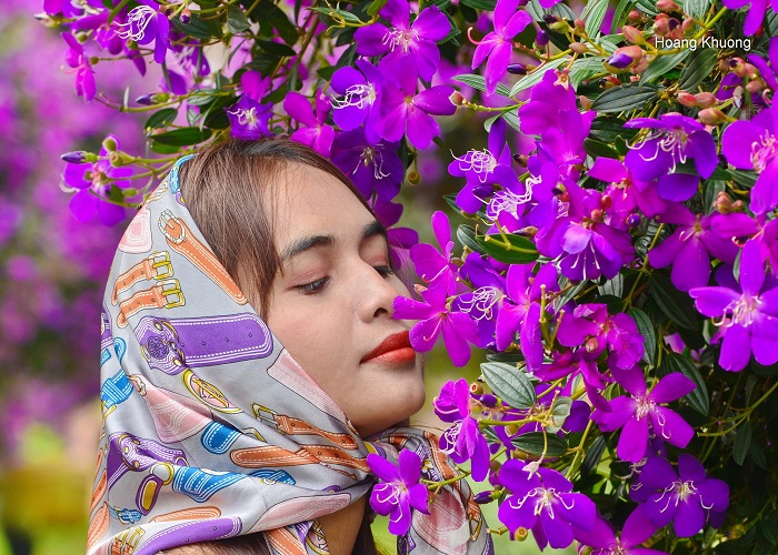 Mùa hoa mua tím Bảo Lộc thu hút nhiều nàng thơ tới check in. Ảnh: Hoang Khuong