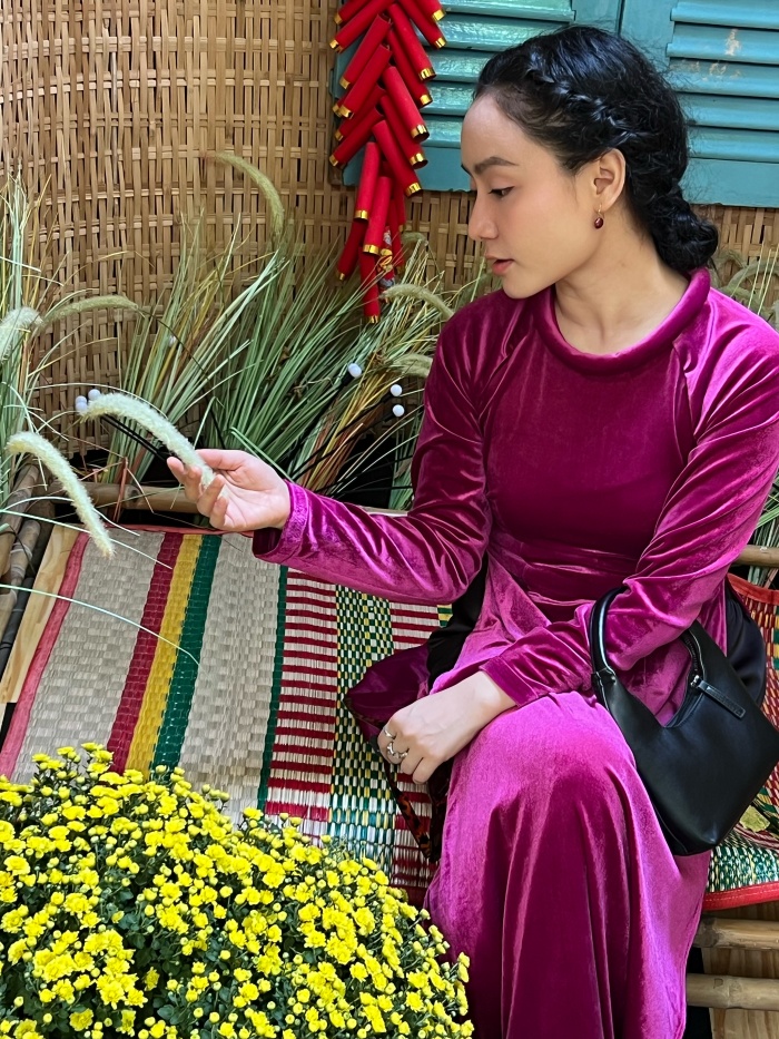 Phong cách thời trang của cô là sự kết hợp thông minh giữa giá trị truyền thống và tư duy hiện đại. Cách cô chọn bối cảnh tre nứa, pháo đỏ để làm nổi bật tà áo dài cho thấy một tư duy thẩm mỹ sắc sảo và am hiểu sâu sắc về văn hóa.